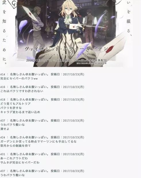 También se menciona que en la presentación del anime “Violet Evergarden ” (2018) unos comentarios destacaron por contener frases como: “Los voy a aplastar”