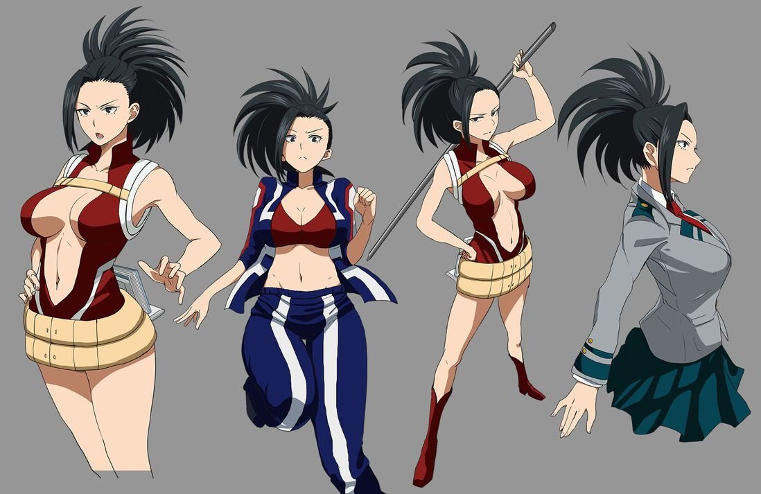 Durante una entrevista con la animadora Yoshihiko Umakoshi, Horikoshi confesó sus intenciones de diseño para chicas como Momo Yaoyorozu.