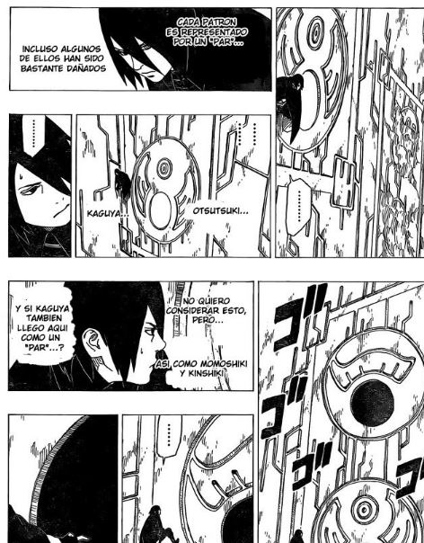 Según Sasuke: “Todos estos patrones están tallados en pares, aunque algunos están muy dañados. Kaguya Otsutsuki … No quiero pensar en eso, pero si como Momoshiki y Kinshiki, Kaguya también vino como uno de un par…”