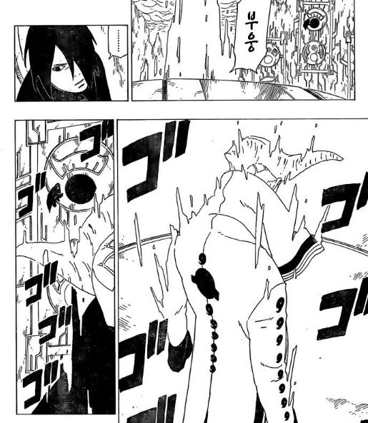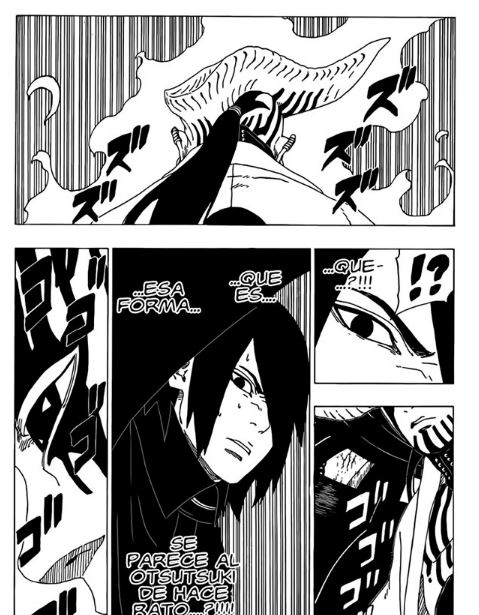 Con esa temida reflexión, Sasuke activa el alter, y ve por primera vez la proyección de otro Otsutsuki, una figura masculina que nunca hemos visto antes. Poco después, un portal se abre y sale por delante del líder de Kara, Jigen. Sin saber que Sasuke está observando, Jigen viene a recolectar chakra de un jinchuriki de Diez Colas que nunca antes hemos visto y que está atrapado en la instalación. ¡Durante esa extracción, se reveló que Jigen ES esta misteriosa figura de Otsutsuki que aparentemente era compañero de Kaguya!